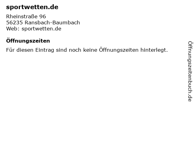| Öffnungszeiten sportwetten.de in Ransbach-Baumbach anzeigen | |