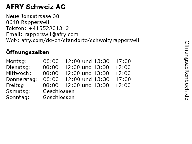 | Öffnungszeiten AFRY Schweiz AG in Rapperswil anzeigen | |