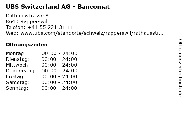 UBS Switzerland AG - Bancomat in Rapperswil: Telefonnummer, Öffnungszeiten und Adresse