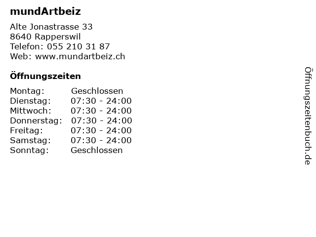 | Öffnungszeiten mundArtbeiz in Rapperswil anzeigen | |