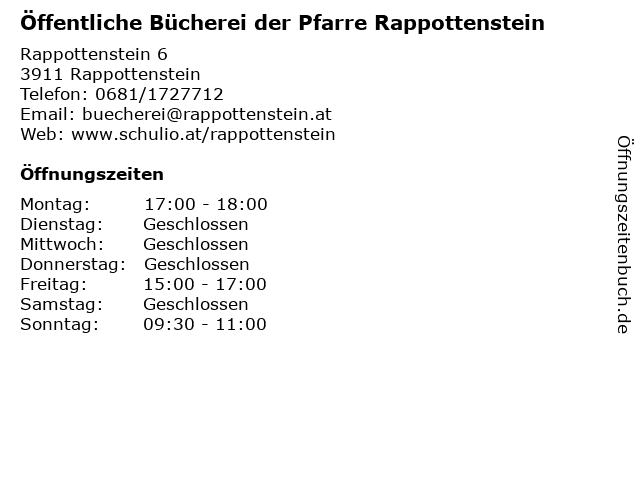 Branchen & Suchbegriffe zu Öffentliche Bücherei der Pfarre Rappottenstein:ausleihen, bibliothek, buch, bücher, bücherei, medien, pfarre, rappottenstein, öffentliche |