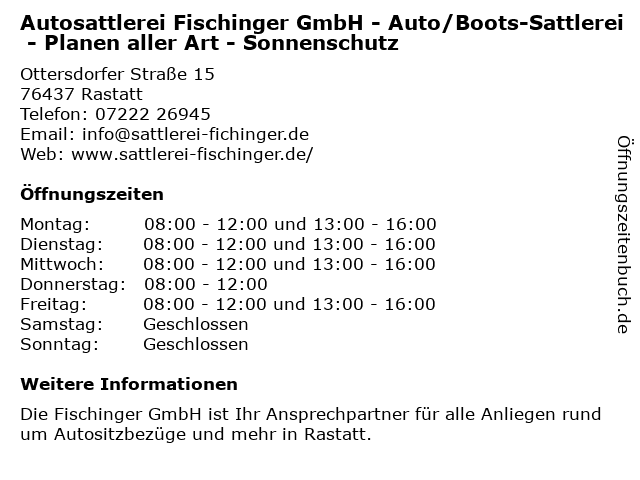 Branchen & Suchbegriffe zu Autosattlerei Fischinger GmbH - Auto/Boots-Sattlerei - Planen aller Art - Sonnenschutz:aller, art, auto/boots, autosattlerei, fischinger, planen, sattlerei, sonnenschutz |
