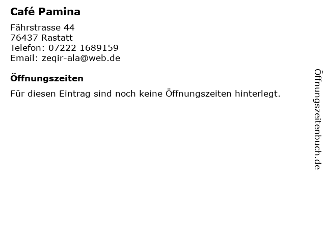 | Öffnungszeiten Café Pamina in Rastatt anzeigen | |