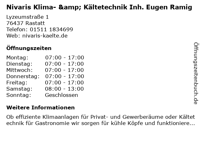 Branchen & Suchbegriffe zu Nivaris Klima- & Kältetechnik Inh. Eugen Ramig:eugen, klima, kältetechnik, nivaris, ramig |