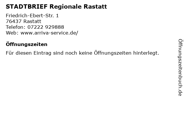 | Öffnungszeiten STADTBRIEF Regionale Rastatt in Rastatt anzeigen | |