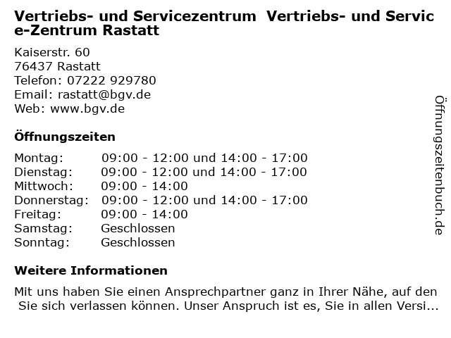Branchen & Suchbegriffe zu Vertriebs- und Servicezentrum Vertriebs- und Service-Zentrum Rastatt:gebäude- und hausratsversicherung, kfz-versicherung (motorrad), lebensversicherung, service, servicezentrum, vertriebs, zahnmedizinische versicherung, zentrum |