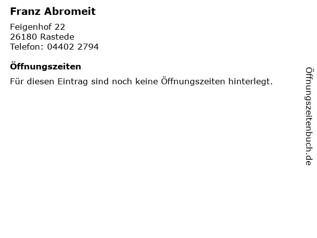 | Öffnungszeiten Franz Abromeit in Rastede anzeigen | |