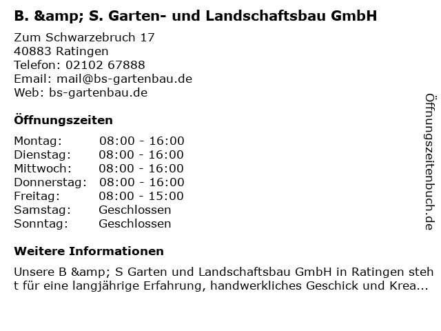 Branchen & Suchbegriffe zu B. & S. Garten- und Landschaftsbau GmbH:b., garten, landschaftsbau, s. |
