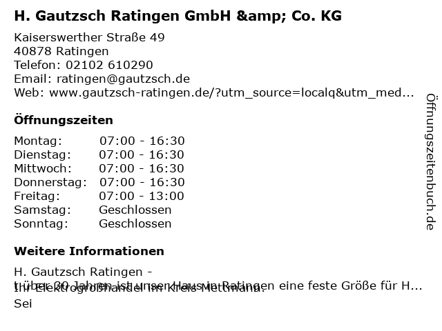 Branchen & Suchbegriffe zu H. Gautzsch Ratingen GmbH & Co. KG:gautzsch, h. |