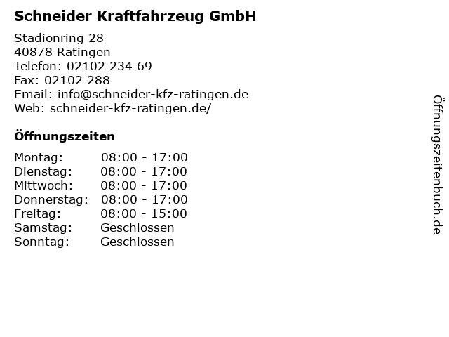 1 Schneider Kraftfahrzeug GmbH Inhaber: Dirk Schneider (Entfernung: 0,10 km) Kaiserswerther Straße 49, 40878 Ratingen 2 Kraftfahrzeug-Techniker-Betrieb Manfred Keusen (Entfernung: 4,71 km) Rather Kreuzweg 81, 40472 Düsseldorf 6 |