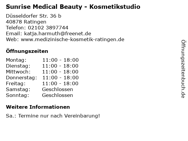 Branchen & Suchbegriffe zu Sunrise Medical Beauty - Kosmetikstudio:beauty, cosmetics, dienstleistung, einzelhandel, harmuth, inh, katja, kosmetik, kosmetikstudio, körperpflege, medical, sunrise |