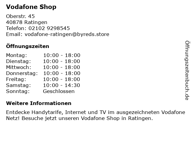 | Öffnungszeiten Vodafone Shop in Ratingen anzeigen | |