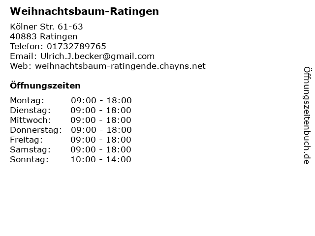 | Öffnungszeiten Weihnachtsbaum-Ratingen in Ratingen anzeigen | |