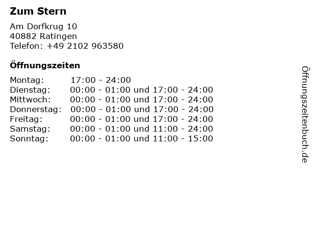 | Öffnungszeiten Zum Stern in Ratingen anzeigen | |