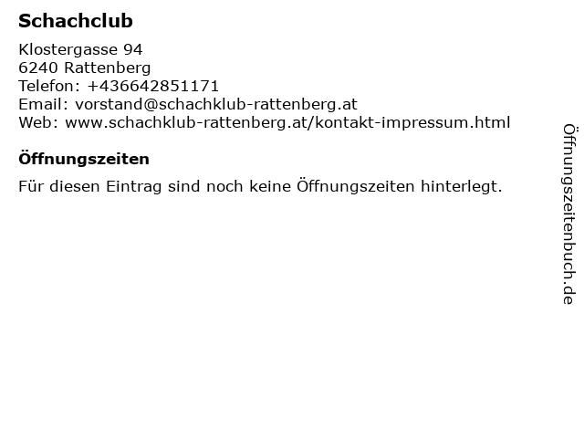 | Öffnungszeiten Schachclub in Rattenberg anzeigen | |