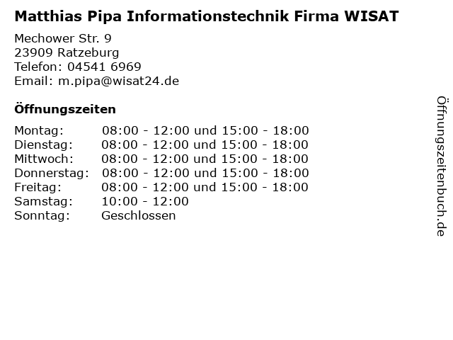 Branchen & Suchbegriffe zu Matthias Pipa Informationstechnik Firma WISAT:elektrofachgeschäft, elektrowarengeschäft, informationstechnik, matthias, pipa, reparaturgeschäft für elektrogeräte, wisat |