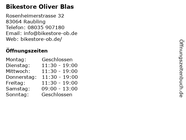 Öffnungszeiten Bikestore Oliver Blas in Raubling anzeigen | |
