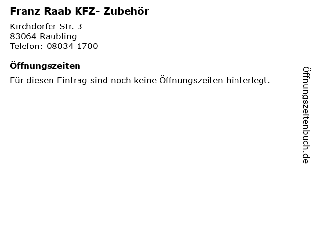 | Öffnungszeiten Franz Raab KFZ- Zubehör in Raubling anzeigen | |