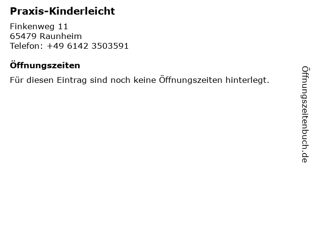 | Öffnungszeiten Praxis-Kinderleicht in Raunheim anzeigen | |