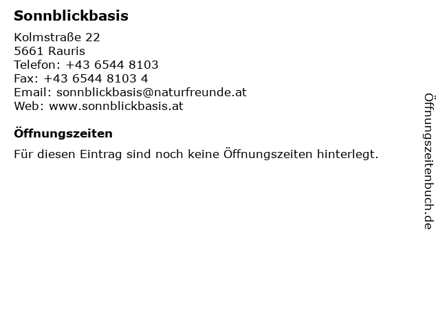 | Öffnungszeiten Sonnblickbasis in Rauris anzeigen | |