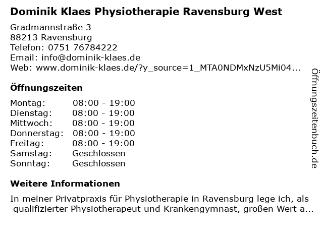 Branchen & Suchbegriffe zu Dominik Klaes Physiotherapie Ravensburg West:dominik, klaes, massagetherapie, personal trainer, physiotherapie, west |