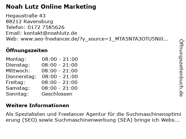 Branchen & Suchbegriffe zu Noah Lutz Online Marketing:lutz, marketing, noah, online |