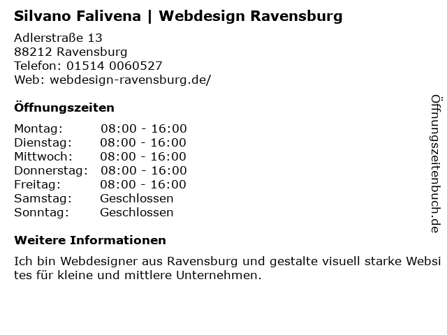 Branchen & Suchbegriffe zu Silvano Falivena | Webdesign Ravensburg:falivena, silvano, webdesign |
