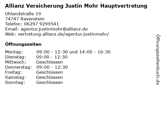 1 Allianz Versicherung Peter Rieger Hauptvertretung (Entfernung: 0,00 km) Uhlandstraße 19, 74747 Ravenstein 3 Allianz Hauptvertretung Uwe Dörzbacher (Entfernung: 9,49 km) Bürgermeister-Werle-Straße 1, 74706 Osterburken 4 Allianz Versicherung Manfred Barleon Hauptvertretung (Entfernung: 16,83 km) Ochsengasse 10, 97980 Bad Mergentheim 5 AXA Hauptvertretung Monika Weber (Entfernung: 18,71 km) Josef-Schmitt-Str. 1-5, 97922 Lauda-Königshofen 6 |