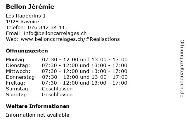 | Öffnungszeiten Bellon Jérémie in Ravoire anzeigen | |