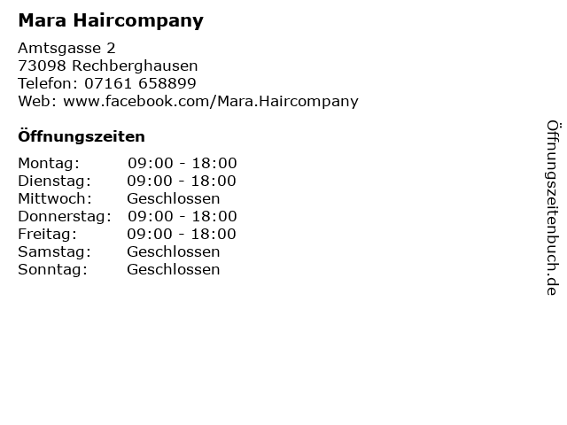 | Öffnungszeiten Mara Haircompany in Rechberghausen anzeigen | |