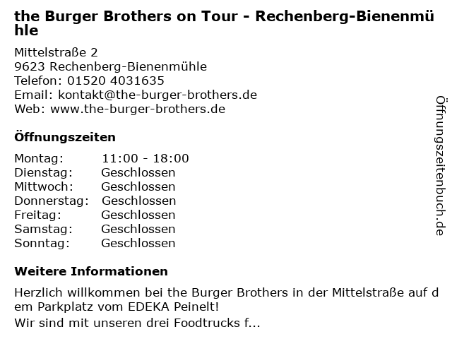 Branchen & Suchbegriffe zu the Burger Brothers on Tour - Rechenberg-Bienenmühle:bienenmühle, brothers, burger, on, rechenberg, the, tour |