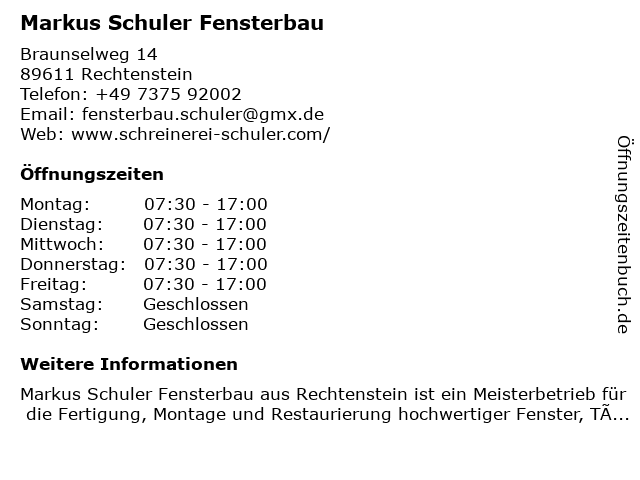 | Freitag | 07:30-17:00 |