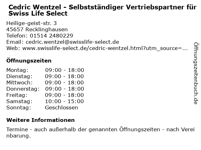 Branchen & Suchbegriffe zu Cedric Wentzel - Selbstständiger Vertriebspartner für Swiss Life Select:berufshaftpflichtversicherung, berufsunfähigkeitsversicherung, cedric, finanzplanung, gebäude- und hausratsversicherung, investmentservice, lebensversicherung, life, mietrechtsschutzversicherung, pflegeversicherung, selbstständiger, select, swiss, versicherungsberater, vertriebspartner, wentzel |