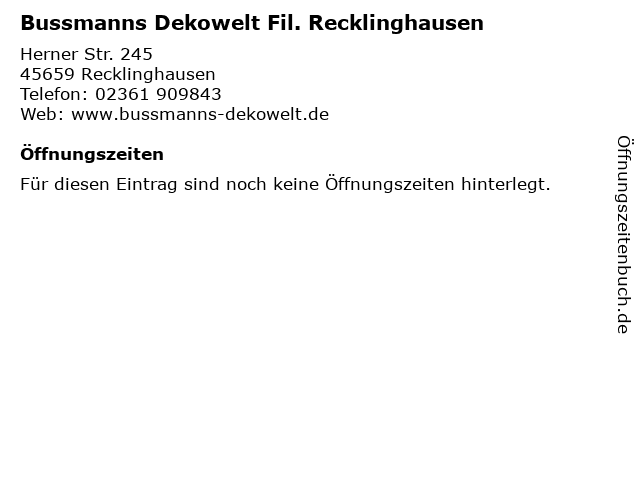 | Bussmanns Dekowelt Fil. Recklinghausen anrufen | |