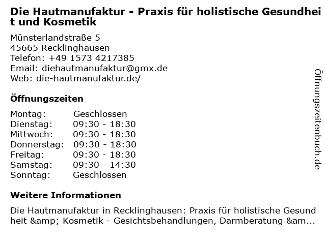 Branchen & Suchbegriffe zu Die Hautmanufaktur - Praxis für holistische Gesundheit und Kosmetik:darmberatung, gesichtsbehandlungen, gesundheit, hautmanufaktur, hautpflege, holistische, kosmetik, praxis  |
