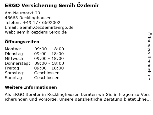 3 VPV Versicherungen Ercan Özdemir - GESCHLOSSEN (Entfernung: 1,33 km) Hochstr. 224, 45661 Recklinghausen 6 |