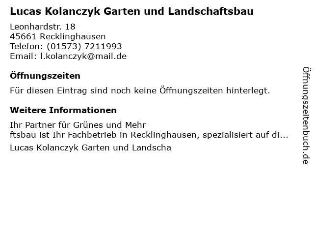 | Lucas Kolanczyk Garten und Landschaftsbau anrufen | |