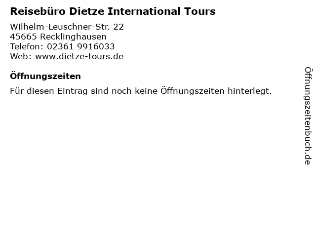 | Reisebüro Dietze International Tours anrufen | |