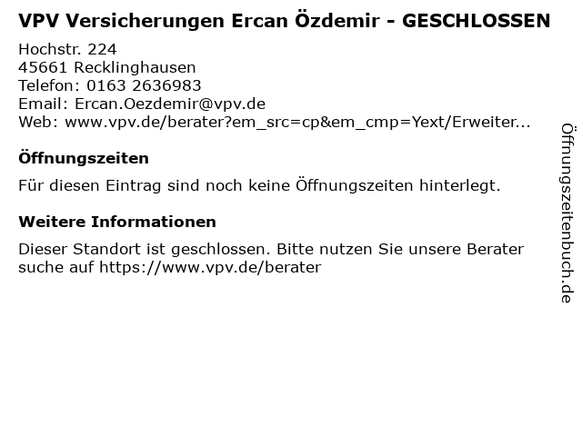 | VPV Versicherungen Ercan Özdemir - GESCHLOSSEN anrufen | |