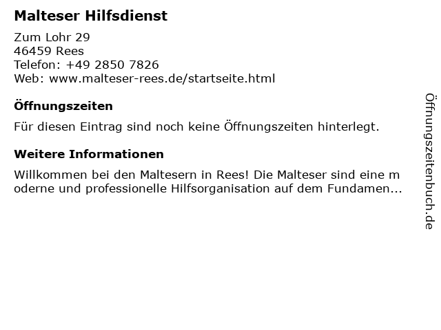 | Öffnungszeiten Malteser Hilfsdienst in Rees anzeigen | |