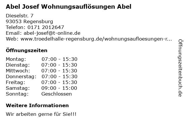 Branchen & Suchbegriffe zu Abel Josef Wohnungsauflösungen Abel:abel, josef, wohnungsauflösungen |