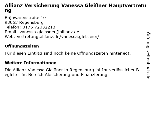 | Allianz Versicherung Vanessa Gleißner Hauptvertretung anrufen | |
