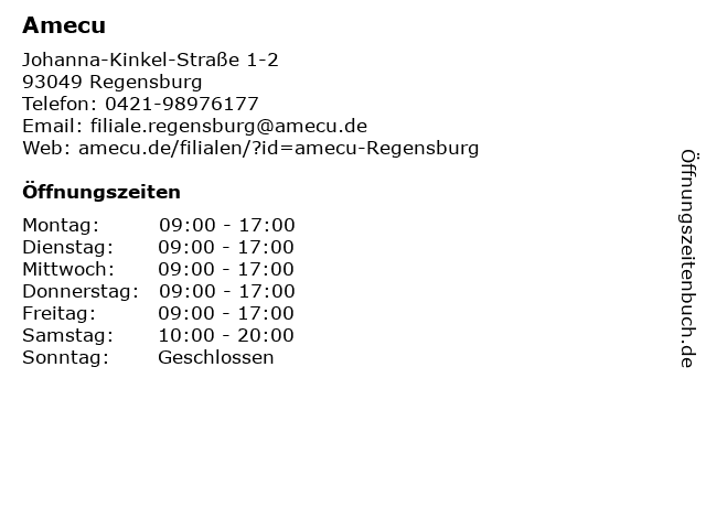 | Öffnungszeiten Amecu in Regensburg anzeigen | |