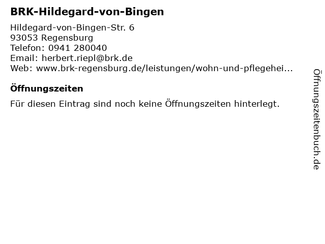 | Öffnungszeiten BRK-Hildegard-von-Bingen in Regensburg anzeigen | |