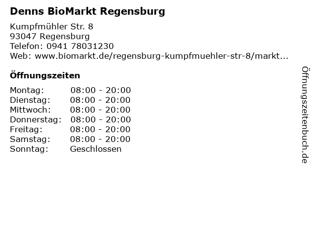 | Öffnungszeiten Denns BioMarkt Regensburg in Regensburg anzeigen | |