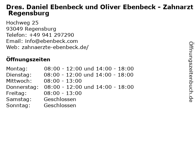 Branchen & Suchbegriffe zu Dres. Daniel Ebenbeck und Oliver Ebenbeck - Zahnarzt Regensburg:daniel, dres., ebenbeck, oliver, zahnarzt |