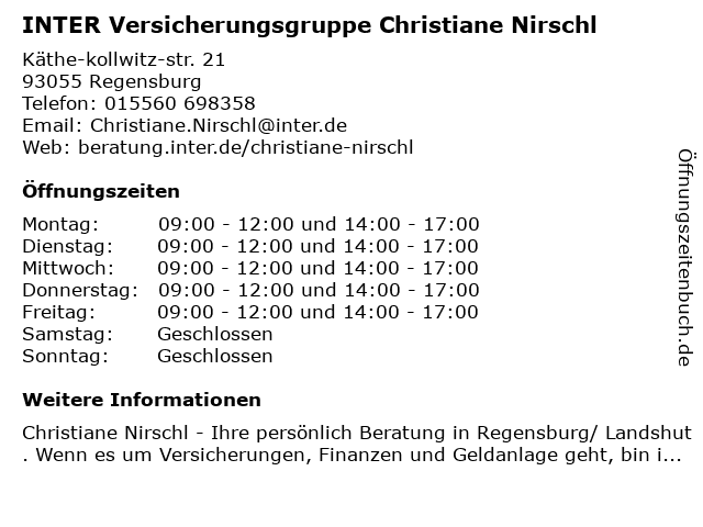 Branchen & Suchbegriffe zu INTER Versicherungsgruppe Christiane Nirschl:altersvorsorge, berufshaftpflichtversicherung, berufsunfähigkeitsversicherung, christiane, gebäude- und hausratsversicherung, gewerbeversicherung, inter, krankenkasse, lebensversicherung, nirschl, pflegeversicherung, versicherungsgruppe, zahnmedizinische versicherung |