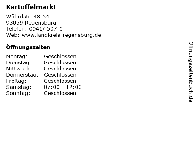 | Öffnungszeiten Kartoffelmarkt in Regensburg anzeigen | |