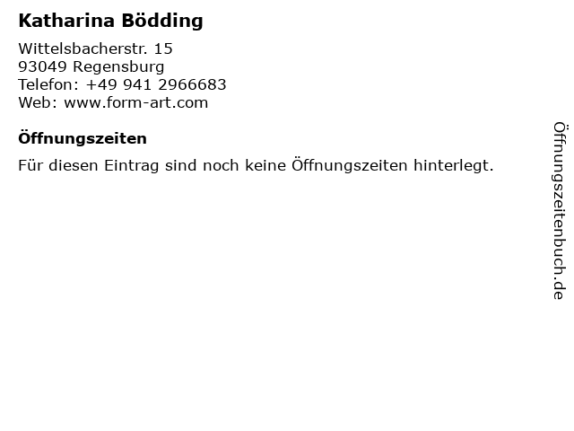 | Öffnungszeiten Katharina Bödding in Regensburg anzeigen | |