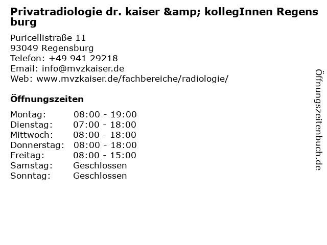 Branchen & Suchbegriffe zu Privatradiologie dr. kaiser & kollegInnen Regensburg:dr., kaiser, kolleginnen, privatradiologie |